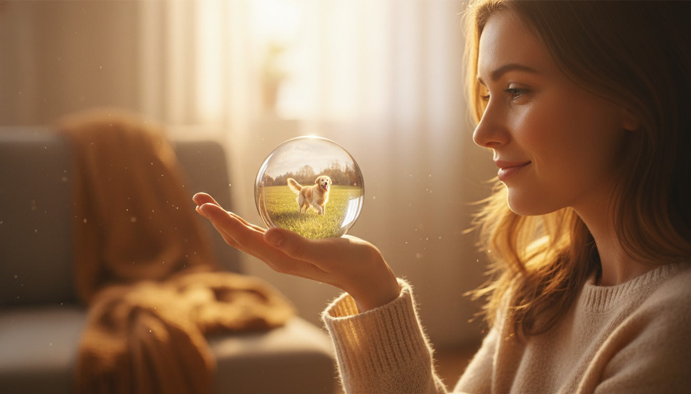 Placing the memory ball in the living room lets me see my pup’s happy moments all day — it fills the house with warmth and love.